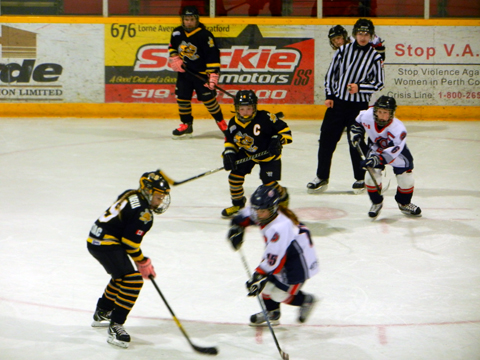 The game continued to be close, as Stratford had their chances, even hitting the post, late in the game. Time expired, and the Sting would skate away with the 1 - 0 win. They get a well deserved break, as they don't play until the St. Thomas tournament on Nov.30th weekend.