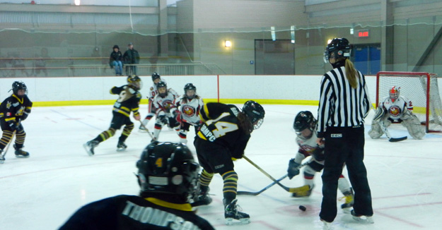 As Canada dominated the Finland game, so too did the Sting the following morning against a very tough competitor in Durham West. Durham 2 weeks prior to Provincials, competed in the Lower Lakes Championship weekend and lost in the Gold Medal game against Brantford to secure the silver medal. However, the Sting woke up early Sat morning and played the best game of their young careers. The arena was electric due to an amazing fan base which pumped the girls up even more.