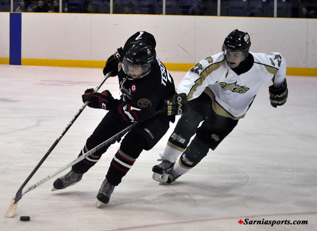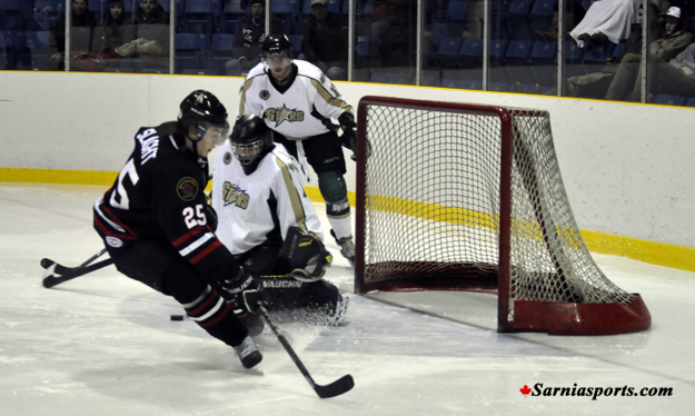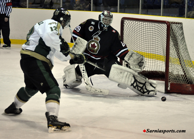 St. Thomas outshot the Legionnaires 37 - 28. Scored two power play goals on five opportunities. Sarnia scored zero on four.
