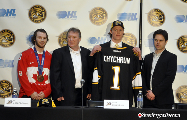 After announcing that 6’2” defenseman Jakob Chychrun would be the first overall pick in the 2014 OHL Priority Selection Friday morning, the Sarnia Sting made the selection official Saturday to open the Draft. Throughout the 15 round event, Sarnia welcomed 16 new prospects to the organization.