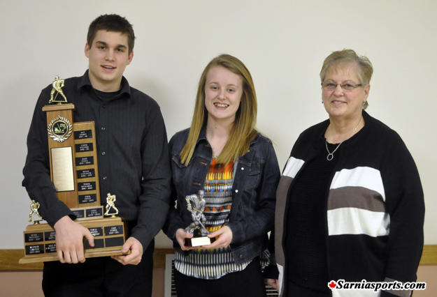 Accepting the award Dan Hachey presented by Ms McDonald and Jill McDonald