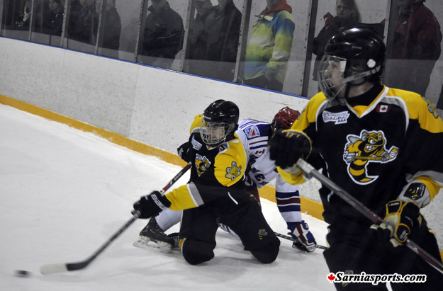 Lambton took a total of eight minutes in penalties on four infractions, Kitchener had four minutes penalty time on two infractions.