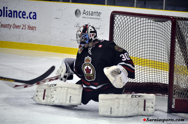 Sarnia goalie Hunter Johnson made 29 saves to pick up the win. Sarnia outshot LaSalle 35-34.
