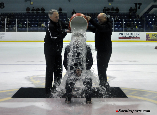 challenge in taking the ALS Bucket Challenge at Centre Ice. Assisting with