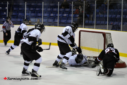 In the second frame, despite dominating the action, Sarnia was unable to increase its lead, going into the dressing room ahead just 4-2.