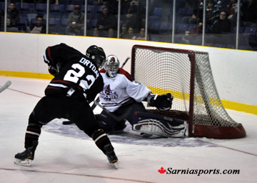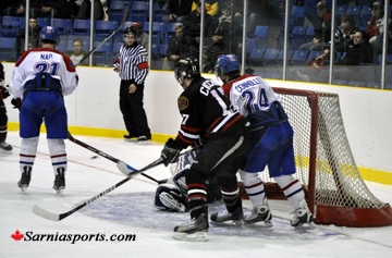 Goalie Sean Parker made 30 saves in the Sarnia net