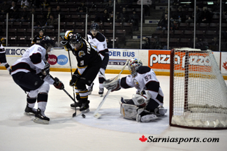 The Spirit outshot Sarnia 22-7 in the third period
