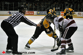 Guelph held a 39-32 edge in shots on goal. Sarnia was two-for-seven on the power play and Guelph one-for-six.