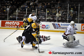 But Sarnia tied the game at 6:01 when Craig Hottot knocked in a rebound off a J.C. Campagna shot.