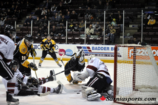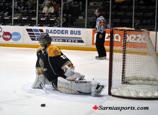 Sarnia was led by overage goalie Troy Passingham. He blocked 37 of 39 shots, including a breakaway and was named the game’s first star.