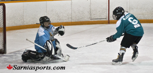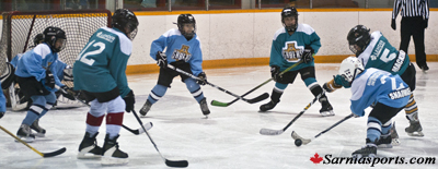 The Lehder (Teal) team came back twice from two goals down to defeat the Magermans and Raes (Blue) team 5-4 with a late third period goal for the victory in the Atom division.