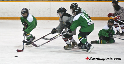Hogan's Pharmacy Atom team won their second round robin game with a 7-1 victory over Lakeshore Optimist.