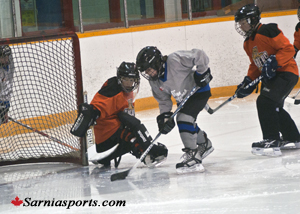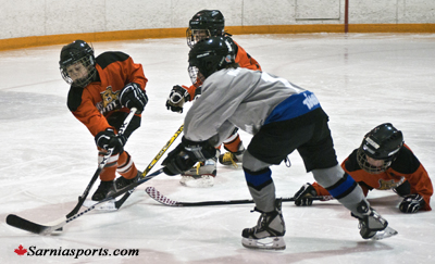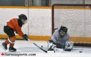 The Sarnia Orange Sabers picked up a 5-3 victory over Nashville - KMHA in the novice division of the March break tournament.