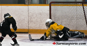 In the the third, the Black Sabers would press for a goal, looking to get back into the game. They would cut the lead down to just one when Zion Ainsworth would get a breakaway and beat Authier to make it 3-2.