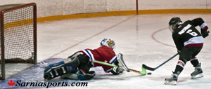 In the third, Nicholson had another chance but his wrist shot was stopped, as was an extra 2 on 0 chance by Mooretown.