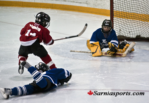 In the second Toronto would get on the board in the first minute, as Owen Ferrera got the puck in the slot and put a wrist shot passed Hayden Forte of the Red Wings to cut the lead to 2-1.
