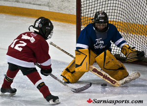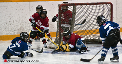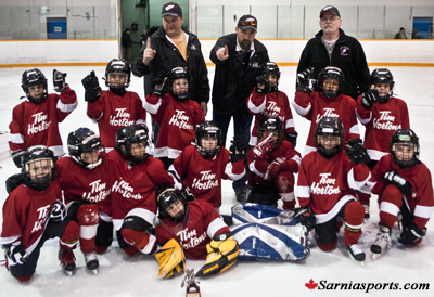 In overtime, it only took1:45 for the Red Wings to go back in front, as Coltin Mitchell picks up a loose puck in front of the Toronto net, dekes around the goalie and puts it into the net for the game winner as the Red Wings win the Instructional division champion for the tournament 4-3 in overtime.