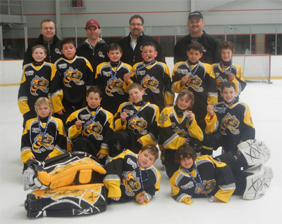 The Lambton Sting Minor Atom AAA's completed a successful season by reaching the finals of the Alliance Playoffs. After disposing of Kitchener in a tough 5 game series the Sting fell in 3 straight to the playoff champion Waterloo Wolves. Here is the team with their Silver Medals.