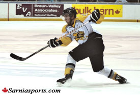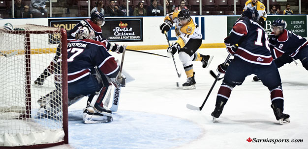 Chiarlitti slap shot to give Sarnia the 3-1 lead.