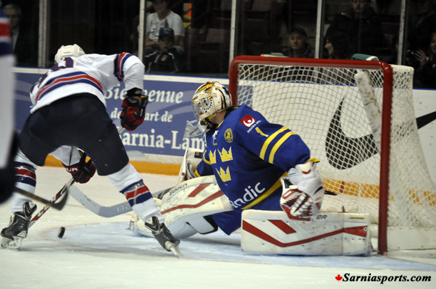 The first semi-final of the day opened up with a lot of energy and speed. Much like the first game between these two teams, USA looked to control Sweden's speed by playing a physical style of game. This style escalated when Max Jones delivered a head shot injuring a Sweden defender. Sweden would get a great chance to extend a lead they created just moments earlier when Alexander Nylander scored to open the game. Goaltender Joseph Woll shut the door which opened the door for Kailer Yakamoto to tie the game before the conclusion of the period.