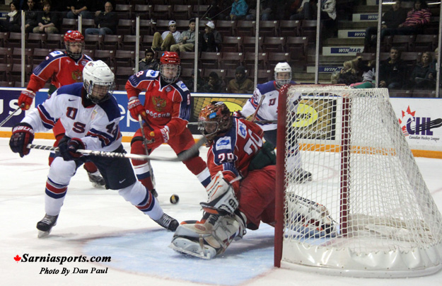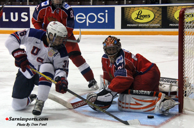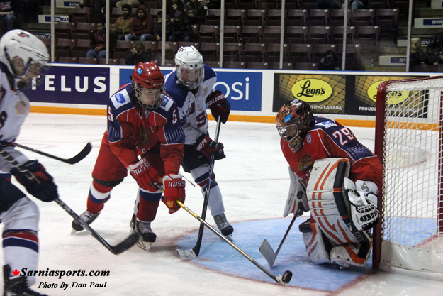 The Russian team would maintain the two-goal lead for nearly 35 minutes with goalie Maxim Kalyayev holding down the fort, making several key saves.