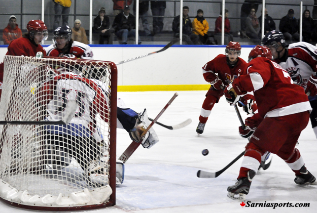 After taking a 3 - 1 lead in the first the Flags added two quick goals in the second the first at 9:04 by Austin Ainsworth from Caden Fleming and then at 10:16 Brett Thompson scored with Lumley assisting.