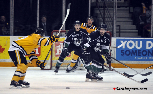 The usually busy Taylor Dupuis needed to make just 14 saves to pick up the win in goal for the Sting while Sarnia fired 30 shots on Nedeljkovic.