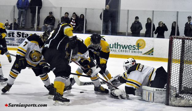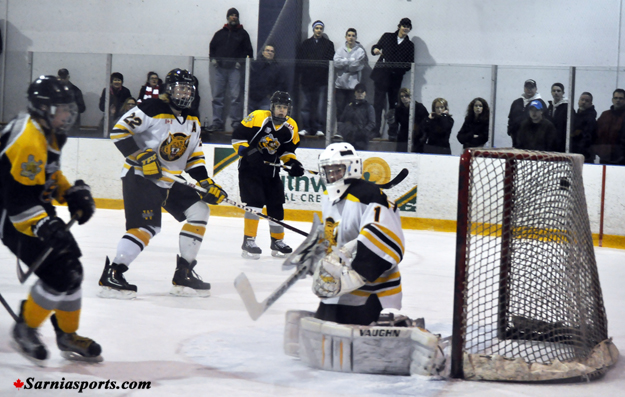 Hockey at it's best was played before a packed house on Monday night in game seven between the #2 seeded West Division Lambton Jr Sting and the #1 seeded East Division Waterloo Wolves.