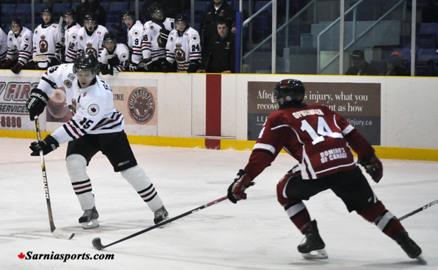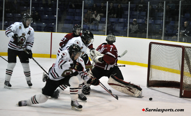 Sarnia came back and fired in three goals and took the lead for the first and only time of the game.