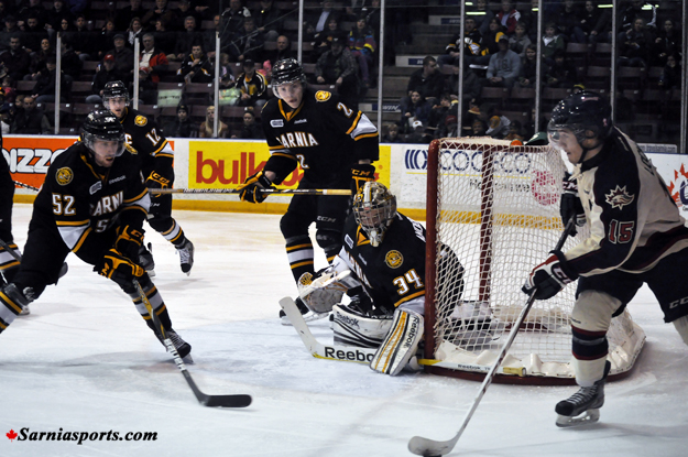 Sarnia picks up a single point and is one point behind Sault Ste. Marie in the battle for sixth place. Both teams have two games remaining.