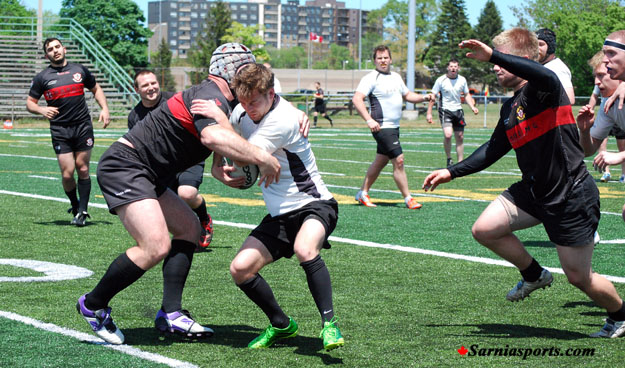 Oshawa scored 3 tries and converted on 2. Sarnia scored a single try.