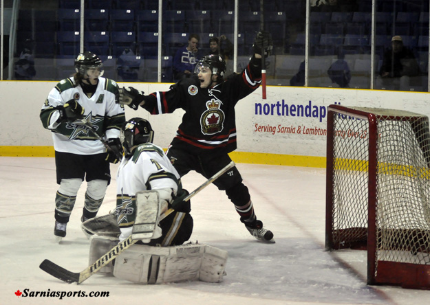 Sarnia outshot St. Thomas 34 -