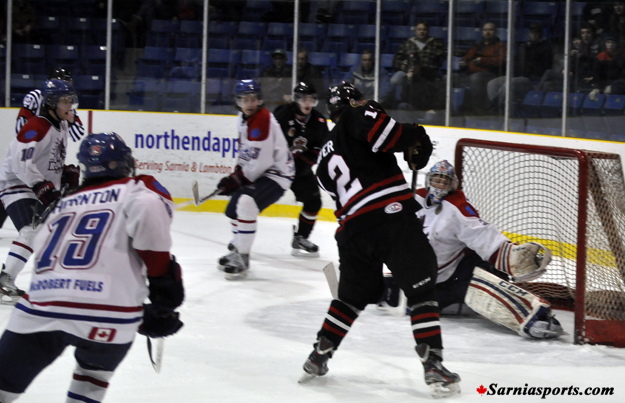 The victory was crucial for Sarnia, which is battling with the London Nationals for fourth place (and home ice advantage in round one of the GOJHL playoffs). Playing at home, London clobbered Chatham 8-3 on Thursday to remain one point ahead of the Legionnaires in the Western Conference standings.