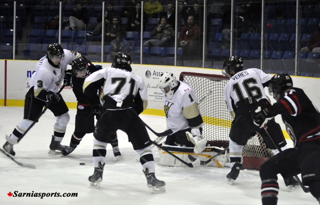 Thursday's game started out as a bit of a defensive struggle. The teams played a scoreless first period, with Sarnia outshooting LaSalle, just 7-5. However the offence -- and the intensity -- picked up as the game wore on.