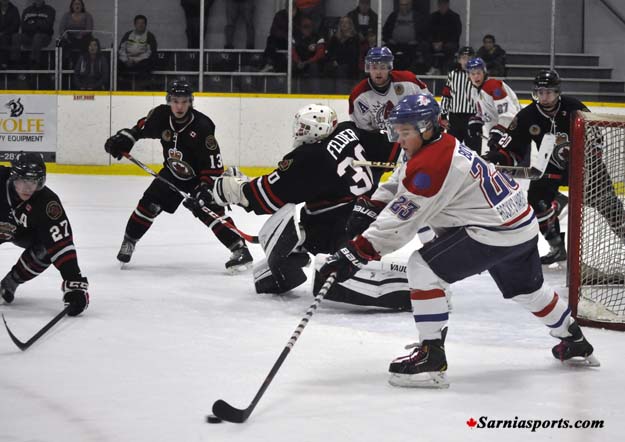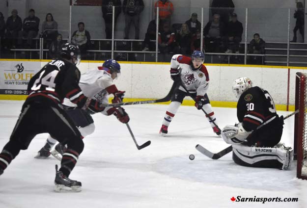 Shots on goal recorded shows Strathroy 52 - Sarnia