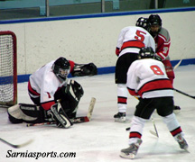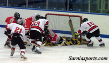 scramble in front of the net and the Lancers poked it in to