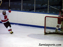 Steve Farlow made the pass up the ice and was credited with